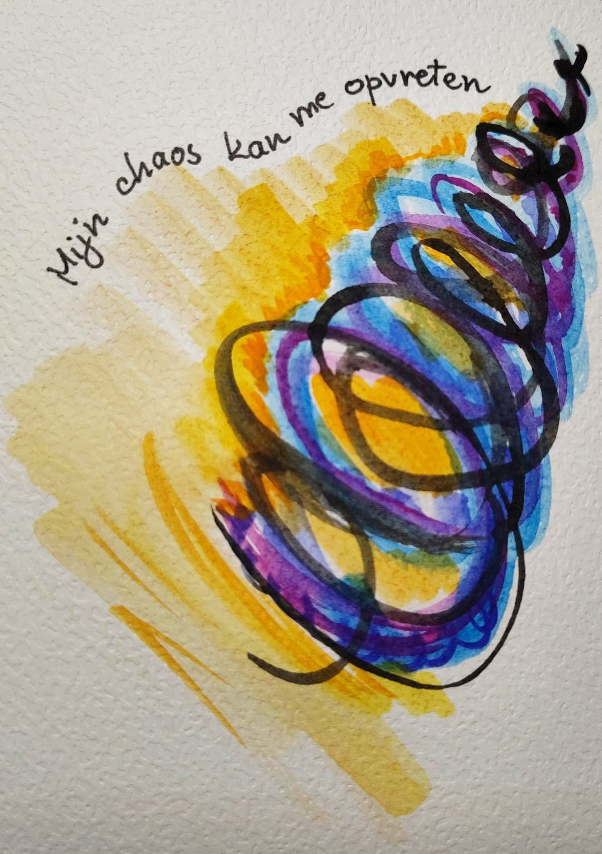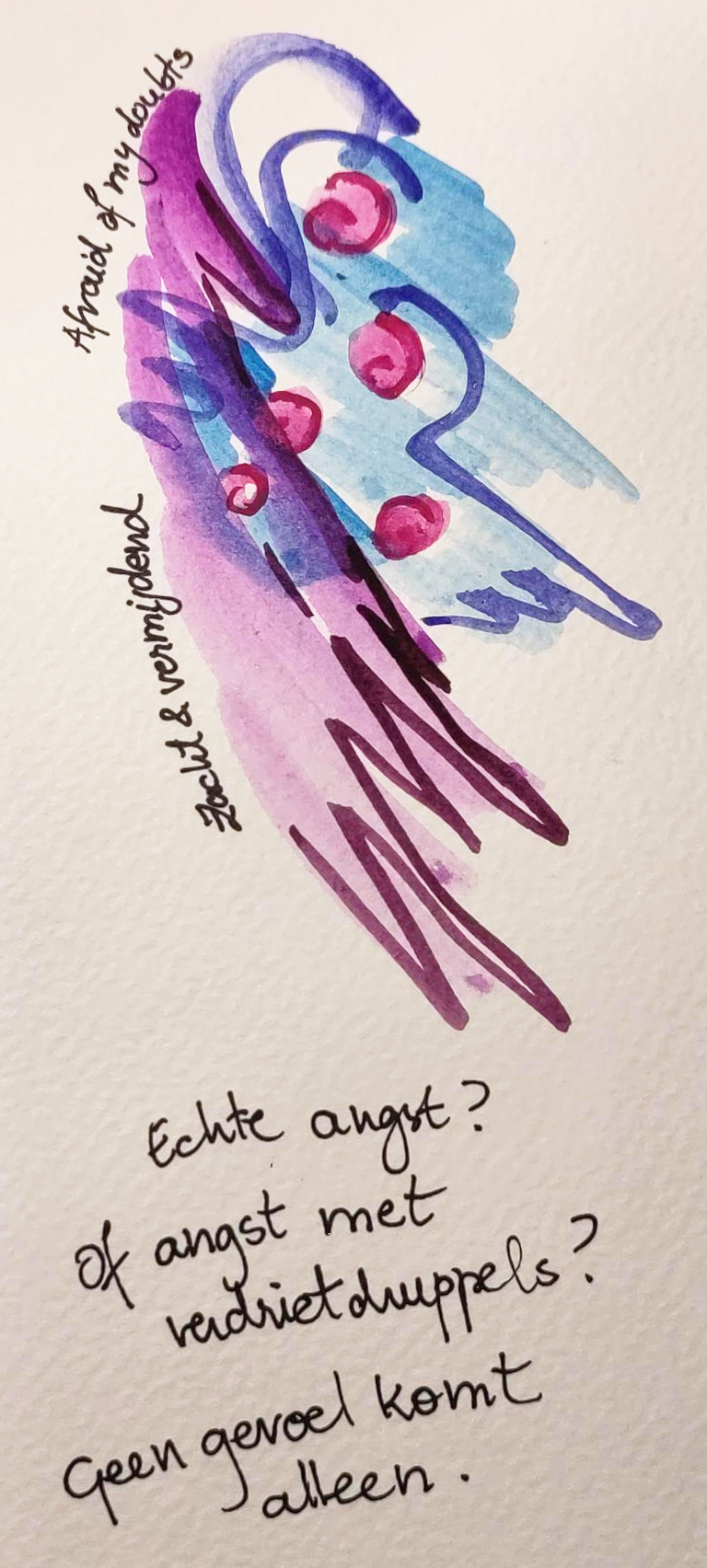 Mijn angst wilde zich niet zo gemakkelijk laten schilderen – ik vond het deze week een echte uitdaging. Alsof angst geen krachtig gevoel is. Of misschien juist te krachtig?