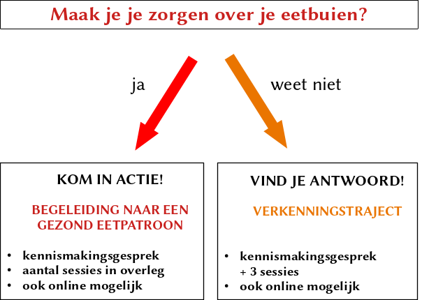 Als je last hebt van eetbuien en je vraagt je af of het echt een probleem is, of je hebt gemerkt dat je gewoonten veranderd zijn sinds er iets anders in je leven is gebeurd en je wilt er gewoon voor zorgen dat ze niet uit de hand lopen, dan kan ik je helpen om: